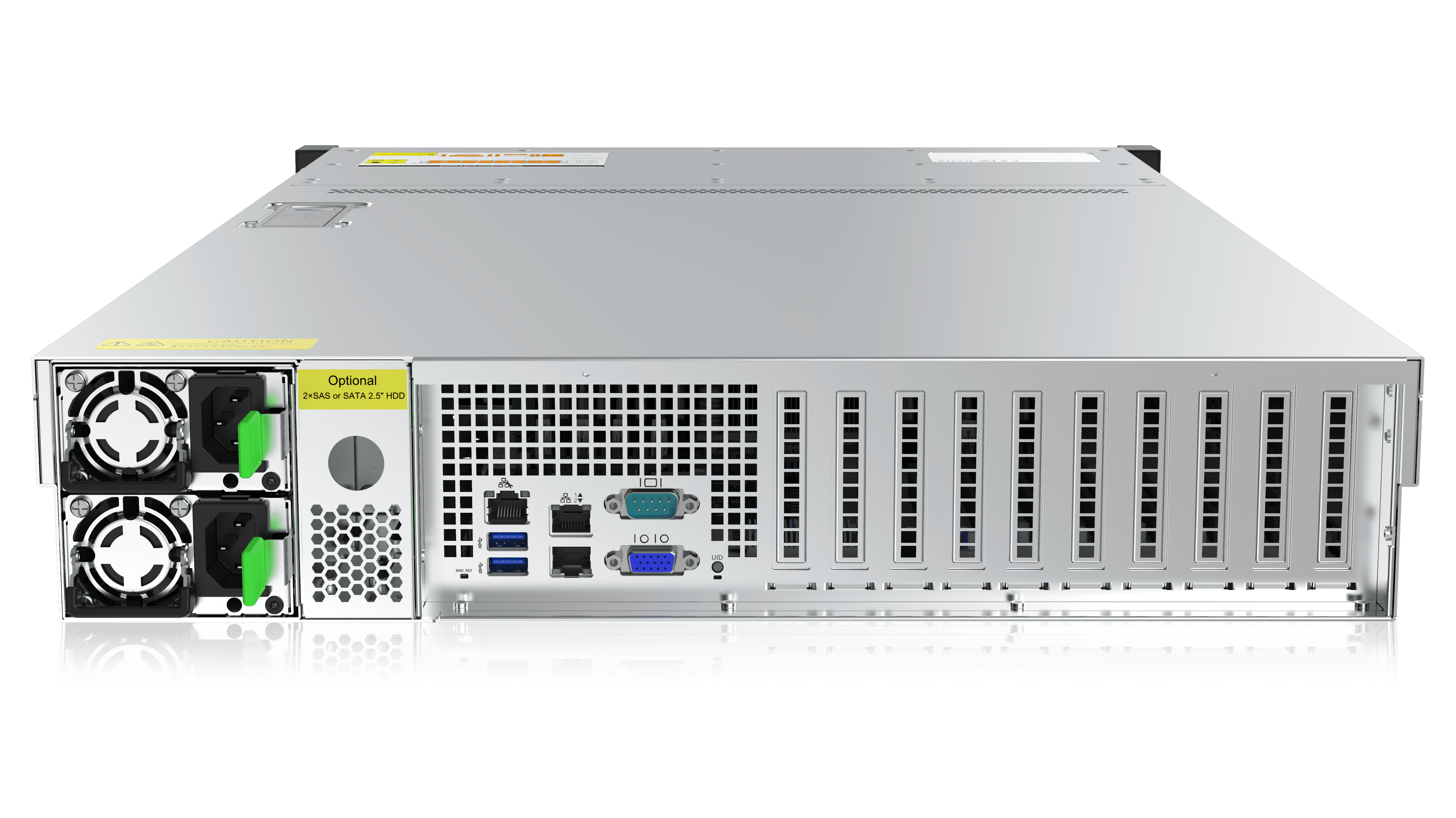 12 universele bays voor 3,5″/2,5″ front facing SATA/SAS-schijven en hot-swap ondersteuning.